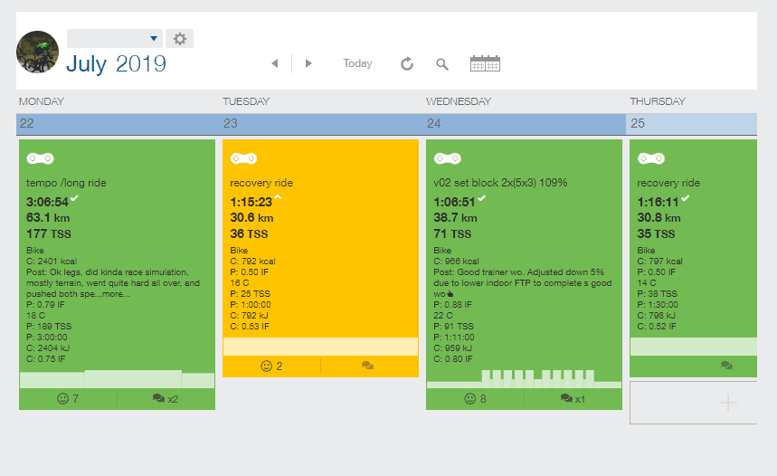 Once your training plan is ready and you start uploading workouts, your coach will analyze training sessions daily. This analysis will either be discussed via your chosen contact tool or inside the day’s workout comments in trainingpeaks. This will be discussed with the athlete during the initial signup.